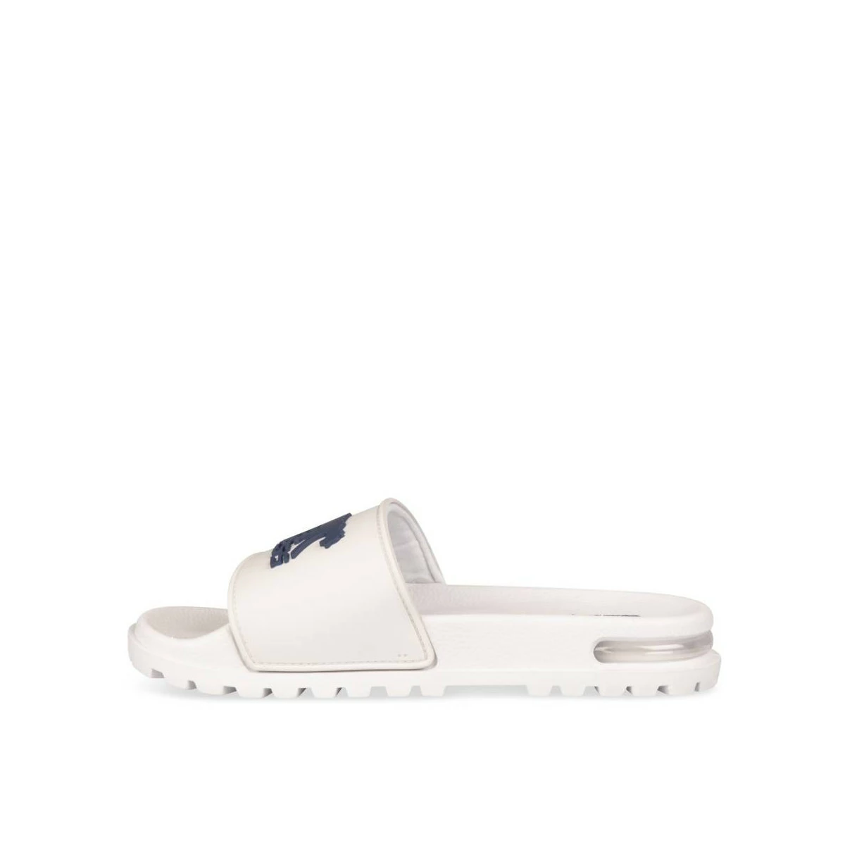 Créez-vous un look sportif un brin futuriste avec cette claquette pisicine blanche de la marque Airness ! La semelle propose un système d’amorti à bulle d’air translucide, alliant design branché et confort de marche. Le logo est apposé en touche contrastante sur la bride ainsi que sur la semelle. Cette mule existe aussi en coloris noir !