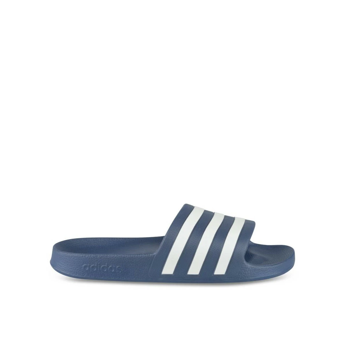 Cette mule piscine adidas Adilette Aqua bleu marine affiche un design simple et épuré, avec ses trois bandes blanches, signature de la marque. Confortable avec sa semelle amortissante, elle est facile à enfiler grâce à son design slip-on !