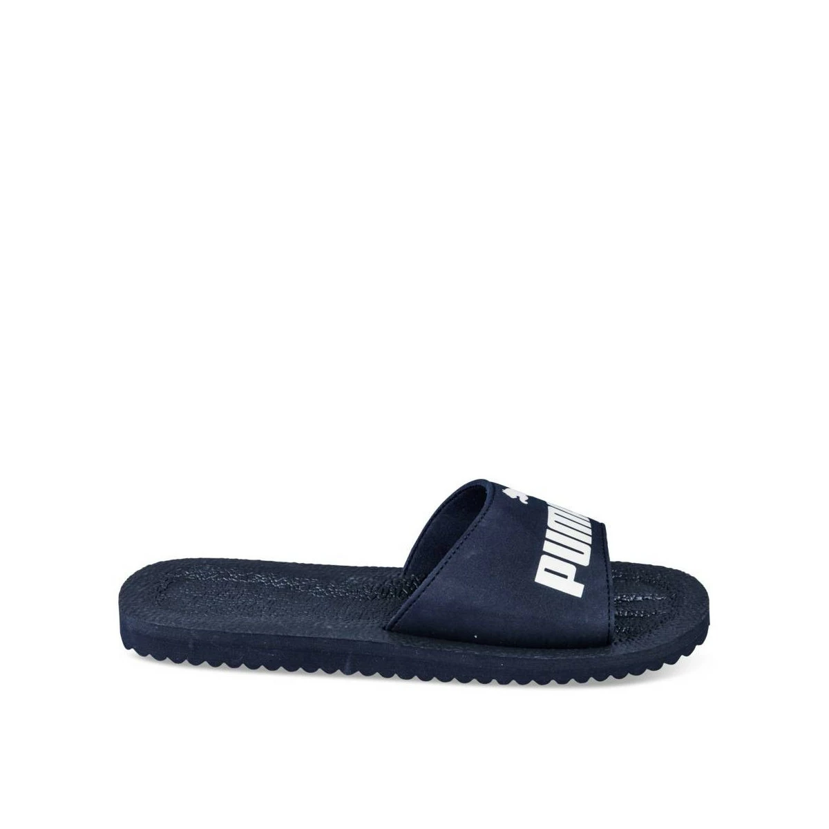 Pour un look sportswear décontracté, la mule piscine sera votre meilleure alliée ! Ce modèle bleu marine de la marque Puma est posé sur une semelle légère crantée. La bride en textile est ornée du logo de la marque. Souple, cette claquette s’enfile rapidement et sèche en un instant : idéale à la sortie de la piscine !