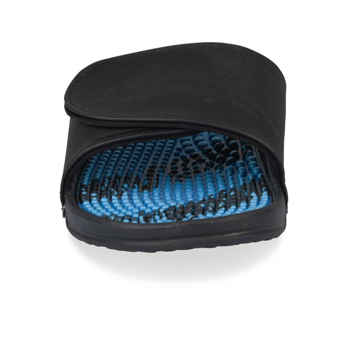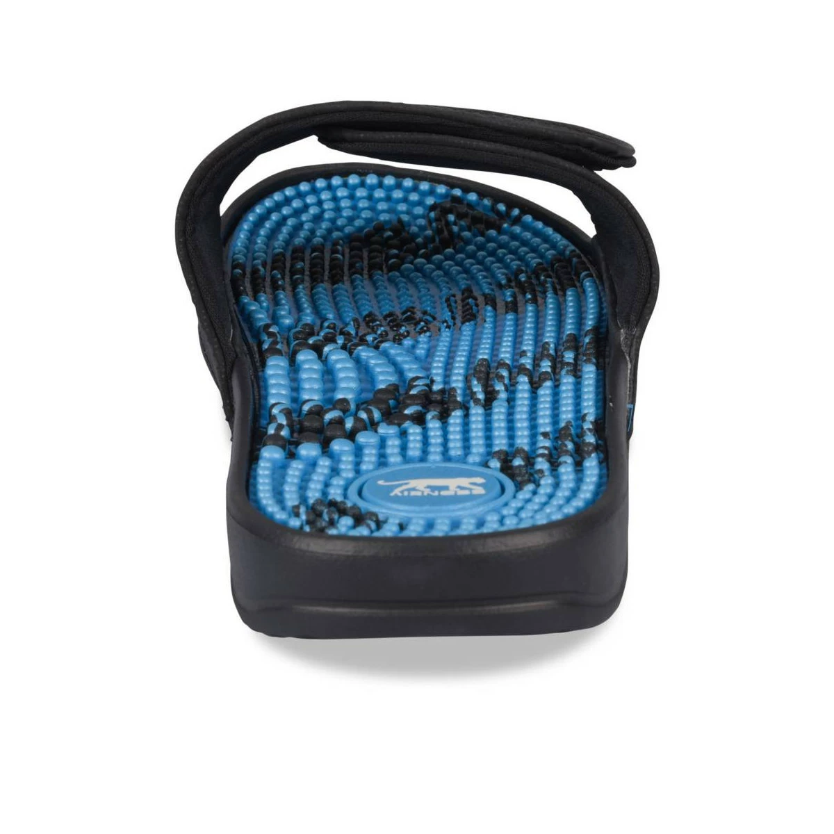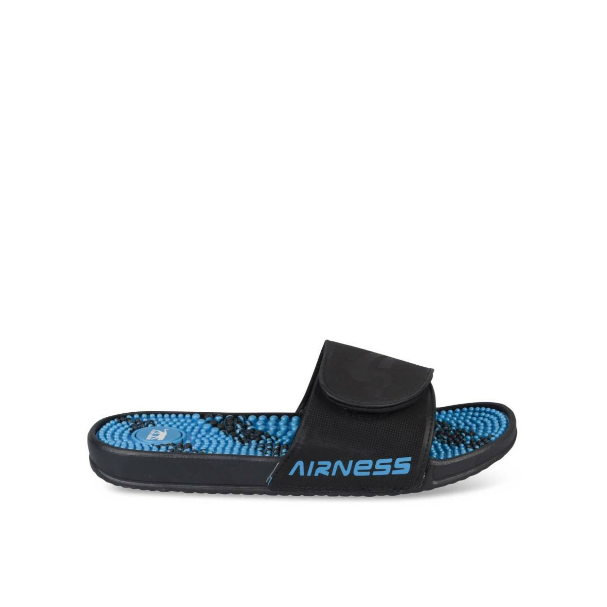 Cette mule piscine Airness noire et bleue marine est idéale pour les looks sportifs de l’été ! Elle se porte avec tout et procure un confort idéal, avec sa semelle légère et amortissante. Le logo Airness apparaît sur la bride à scratch réglable. Des petites billes de massage sont disposées sur la semelle intérieure. La mule se décline aussi en coloris turquoise.