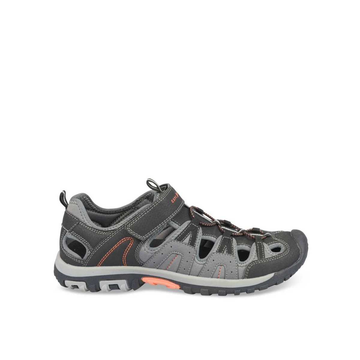 Mi sandale, mi basket, cette chaussure grise au look sportif est idéale pour randonner ou même se baigner les pieds protégés ! La tige très enveloppante est dotée d’aérations pour une bonne respirabilité. La sandale est posée sur une grosse semelle crantée, pour un amorti optimal. Elle s’enfile très facilement, grâce à ses lacets élastiqués et sa bride à scratch réglable. Une sandale aussi pratique que fonctionnelle !