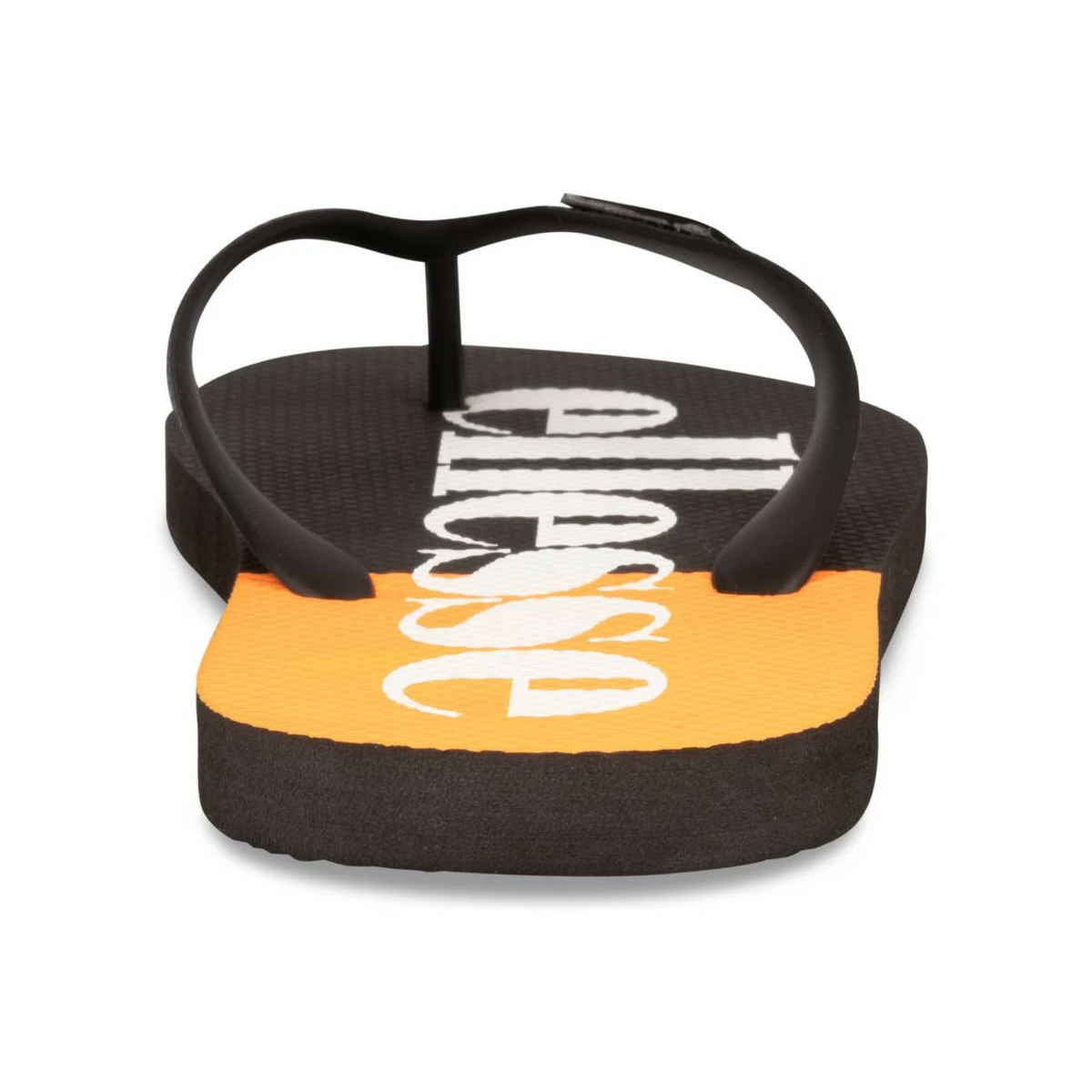 Messieurs, en été, privilégiez la tong pour un confort pratique ! Ce modèle noir et orange en caoutchouc de la marque Ellesse est idéal à la sortie de la piscine ou à la plage, car il s’enfile facilement et sèche rapidement ! Le logo Ellesse est apposé sur la semelle intérieure, et sur la bride triangle. Un must-have en vacances !